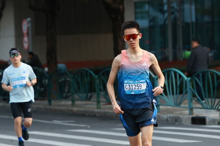 上海半马和上海马拉松如今已经成为大多数人生活里的一部分。 澎湃新闻记者 朱伟辉 摄同样第一次参加上海半马的张其尤,就是这样一路在身边陪跑员的鼓励下以及赛道两旁观众的加油声中坚持到了最后。张其尤从2025年1月份才开始接触跑步,在站上上半马的赛道前,他甚至没有怎么练过长距离。但他希望通过自己的坚持,让更多人看到视障跑者也能够走出家门并且融入社会,所以他报名参加了这次上海半马。